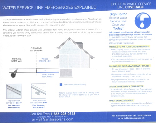 Did you receive this brochure in your water bill envelope offering insurance to provide repair service for the water line between the water meter and your house?